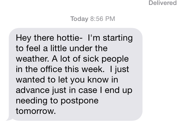 So for starters, please don’t refer to me as “hotttie”….but did you just do what I think you just did? Let me know you’re probably gonna cancel on our non scheduled date and make up some lame excuse about maybe feeling sick? I hate them all. Ok, hate is a strong word but I am EXHAAAUUUSSTEEEEED.